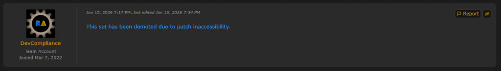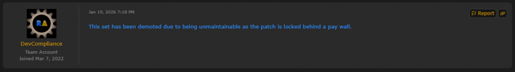 Meanwhile, pending a resolution, the patch continued (and continues) to be hosted on RAPatches.
