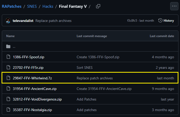 The hack author specifically does not want their patches hosted on RAPatches and because of that we aren’t able to ensure continuity of maintenance.