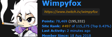 You can follow Wimpyfox on Twitch, YouTube, or RA; for the player rankings, click here.