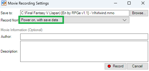 If you are recording a player input file rather than a video, be sure to stop recording before you attempt to rewind. After rewinding to the desired point to resume from, activate emulator pause, optionally make a backup save state, and start recording your inputs to a new filename. All such input files should be gathered and submitted at the end of your run.