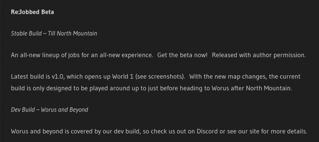So what’s this version 1, and where can it be found? Version 1 (beta) is hosted exclusively on RHP here. According to the hack submission, version 1 has two builds: