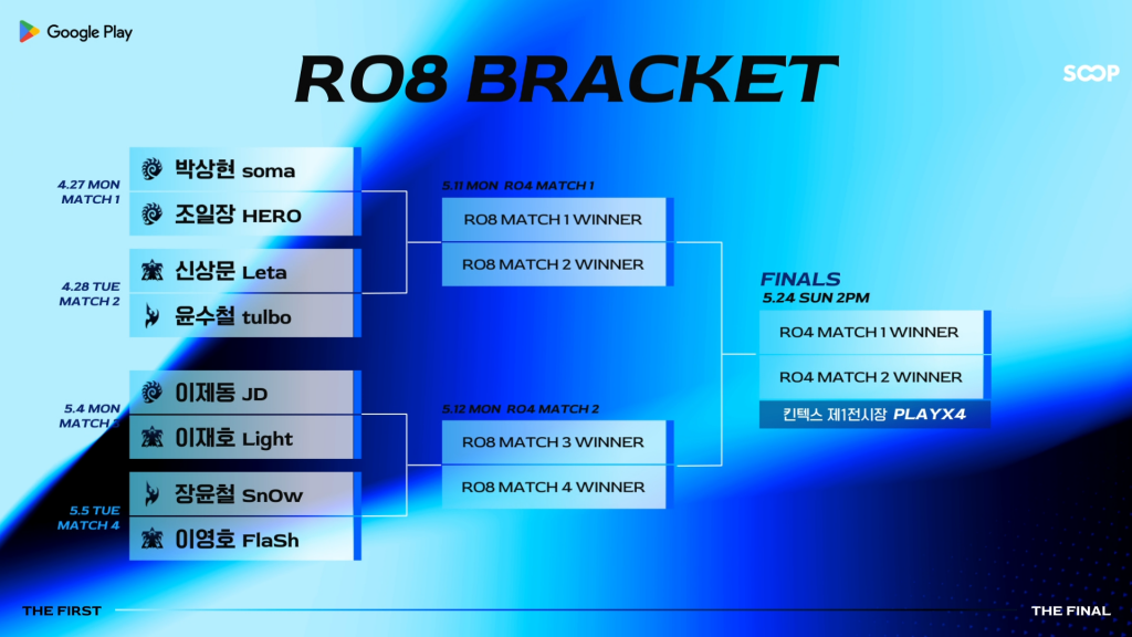 Facing off in StarCraft: Remastered will be the following players as the tournament format transitions from double elimination to single elimination from this stage of competition forward: