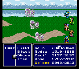 - In some dungeons, Golbez does not display properly if you save, exit, and resume the game. Not a huge deal since this is all on emulator anyway.