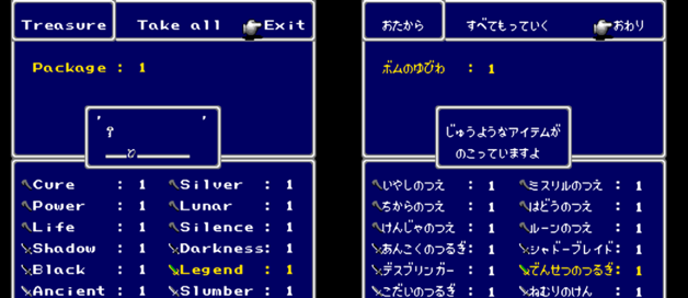 Has anyone come across or fixed this bug? The English versions have garbage for the message when you have too many items and try and leave a key item behind. The Japanese versions have a message saying, "You've left an important item." I tried to attach a screenshot of what both versions look like, but it kept giving me an error saying the upload folder was full.
