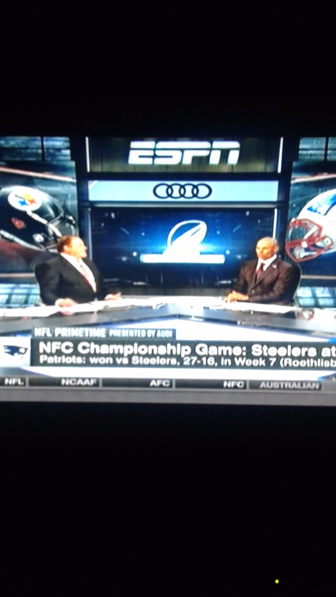 as for the second game, i'll go Patriots, 23-19.  the Steelers' stronger schedule and New England's slow start against the Texans gives me some pause, but the Pats won head-to-head, and were better against nearly all common opponents (aside from Buffalo, where the 1st meeting had no Brady).  not to mention their great run defense is a contrast from what Pittsburgh has faced these playoffs.