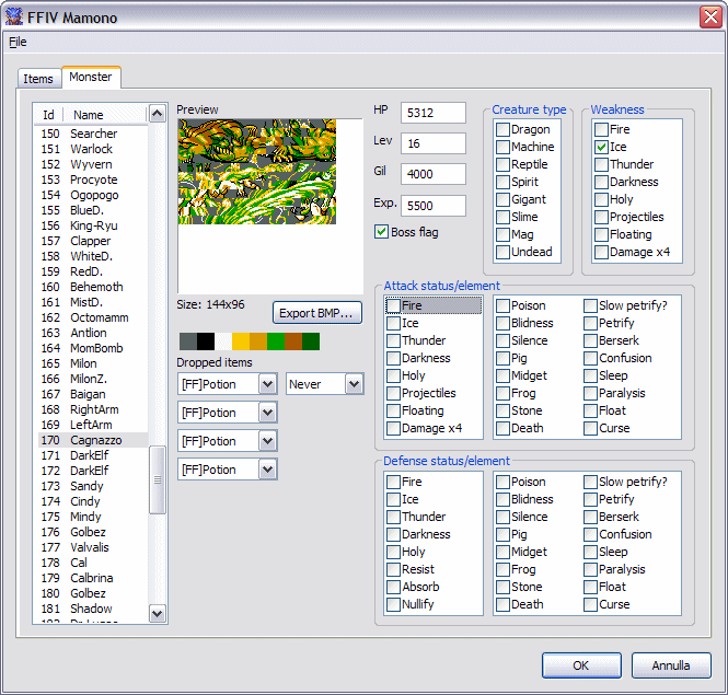 http://www.finalfantasyiv.net/emulation/documents/itemcompendium.xlsI'm sure you know most of what's there already. I only just noticed recently that the attack/effect/heal items were handled like magic. Anyway the data I'm working on with the treasure is in there.