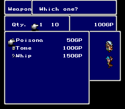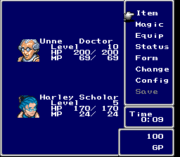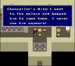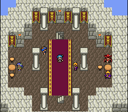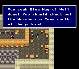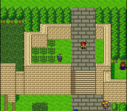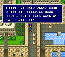 This mini-hack only has a handful of playable characters. This means all of the major NPCs use playable character graphic slots, allowing for a full set of poses. This also means I have lots of NPC slots open for new types of townspeople, including several from FFIII and FFV.