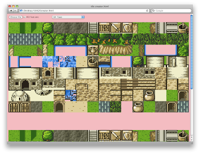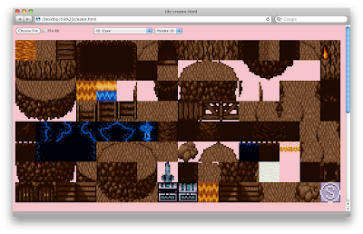 It takes two or three seconds to draw all of it on the canvas, so it may not be practical when I'm loading *all* the tilesets from the ROM, but I'll have to see once I get all of them working. If nothing else, I can use it to create the tile graphics with the proper palettes, then export those to an image which I can use for my tilesets. Not as cool, but possibly more practical. If anyone has any HTML canvas tips, or a better idea, let me know!