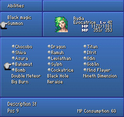 • Abilities/Spell/Magic (this one has a little gimmick enabling the user to pick any spells from the list, even monster commands);