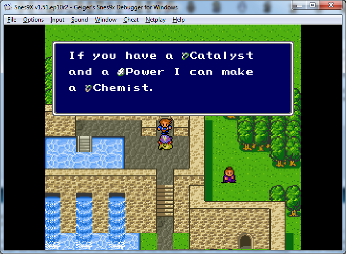 I knew I wanted to do something relatively beneficial but I couldn't be sure what, my mind hopped between making them forge better weapons and armor and then my mind caught up and I realized that FFIV isn't really set up that way by default and it may cheapen the experience if you turn an Ancient Sword into a Volt Sword and then you win a Volt Sword anyhow. I was also thinking of battle items, but that's what Hunt is mainly for and I didn't want to bite into its purpose. So I thought about it a bit more and realized that my hack only gives out Accessories in very sparse quantities but I then thought it through a little more and realized that it may be Too constrictive.