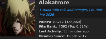 You can follow Alakatrore on RA; for the player rankings, click here.