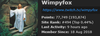 You can follow Wimpyfox on Twitch, YouTube, or RA; for the player rankings, click here.